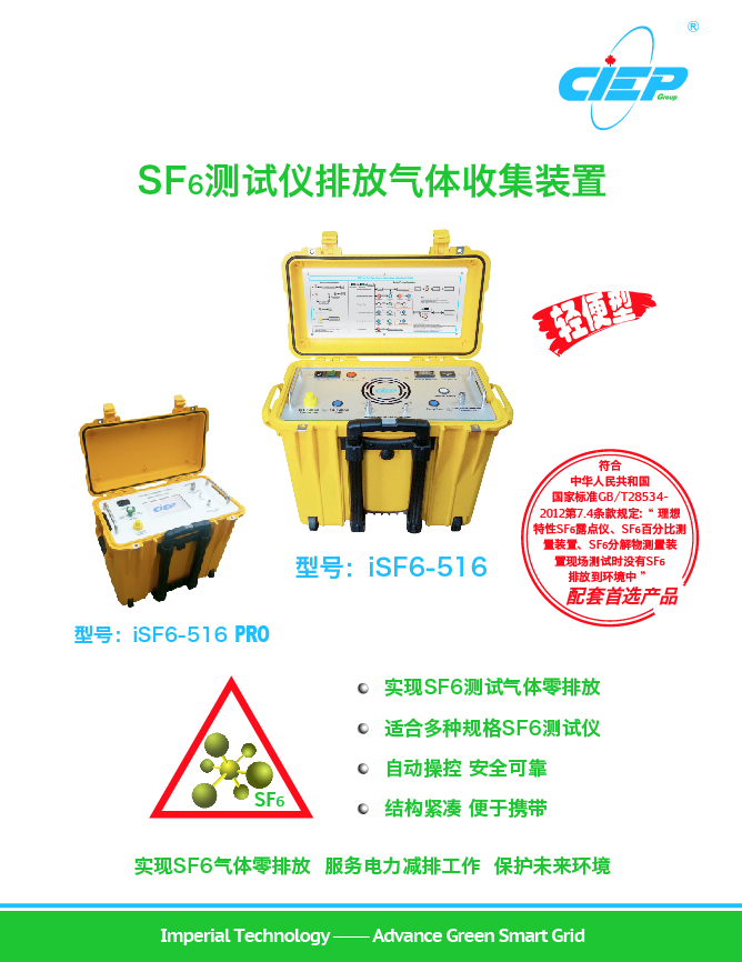 輕便式iSF6-516型SF6 測試儀排放氣體收集裝置專為電力現(xiàn)場收集SF6 測試儀排放氣體而設(shè)計,該收集裝置安裝在一個運輸箱里,用于收集并儲存SF6 測試儀器排放出的SF6 氣體。