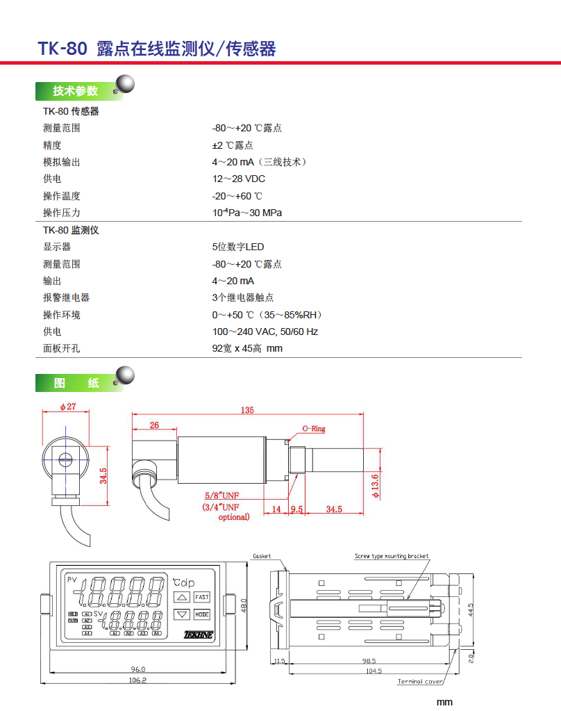TK-80露點(diǎn)在線監(jiān)測儀/傳感器