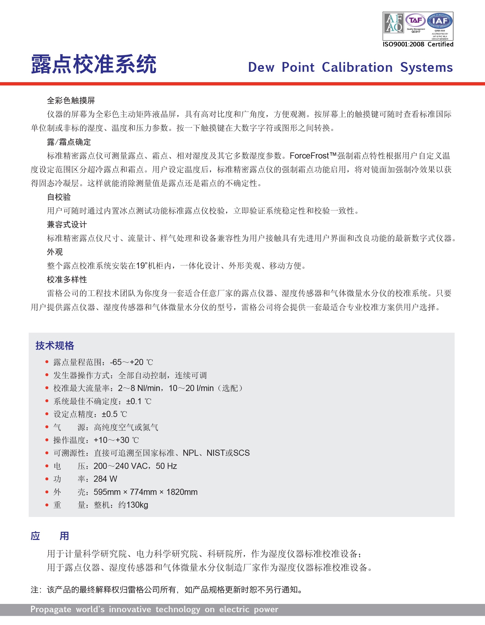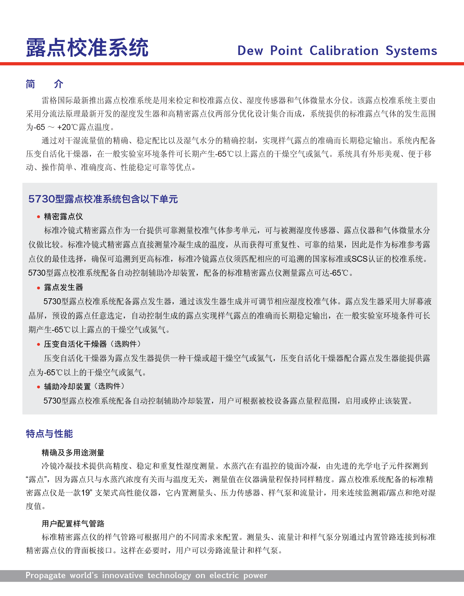 雷格國(guó)際推出露點(diǎn)校準(zhǔn)系統(tǒng)是用來(lái)檢定和校準(zhǔn)露點(diǎn)儀、濕度傳感器和氣體微量水分儀。該露點(diǎn)校準(zhǔn)系統(tǒng)主要由采用分流法原理最新開(kāi)發(fā)的濕度發(fā)生器和瑞士MBW公司573型高精密露點(diǎn)儀兩部分優(yōu)化設(shè)計(jì)集合而成,系統(tǒng)提供的標(biāo)準(zhǔn)露點(diǎn)氣體的發(fā)生范圍為-65 ~ +20℃露點(diǎn)溫度。