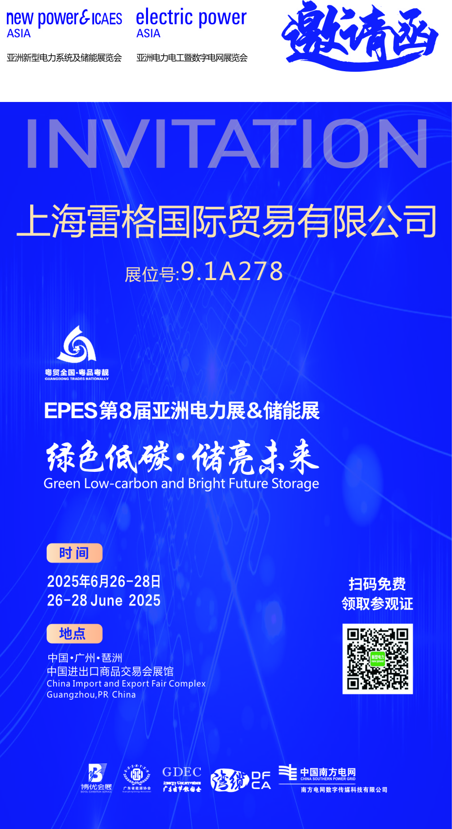 雷格將參加此EPES第8屆亞洲電力展&儲能展,誠邀您作為我司特邀嘉賓蒞臨參觀!