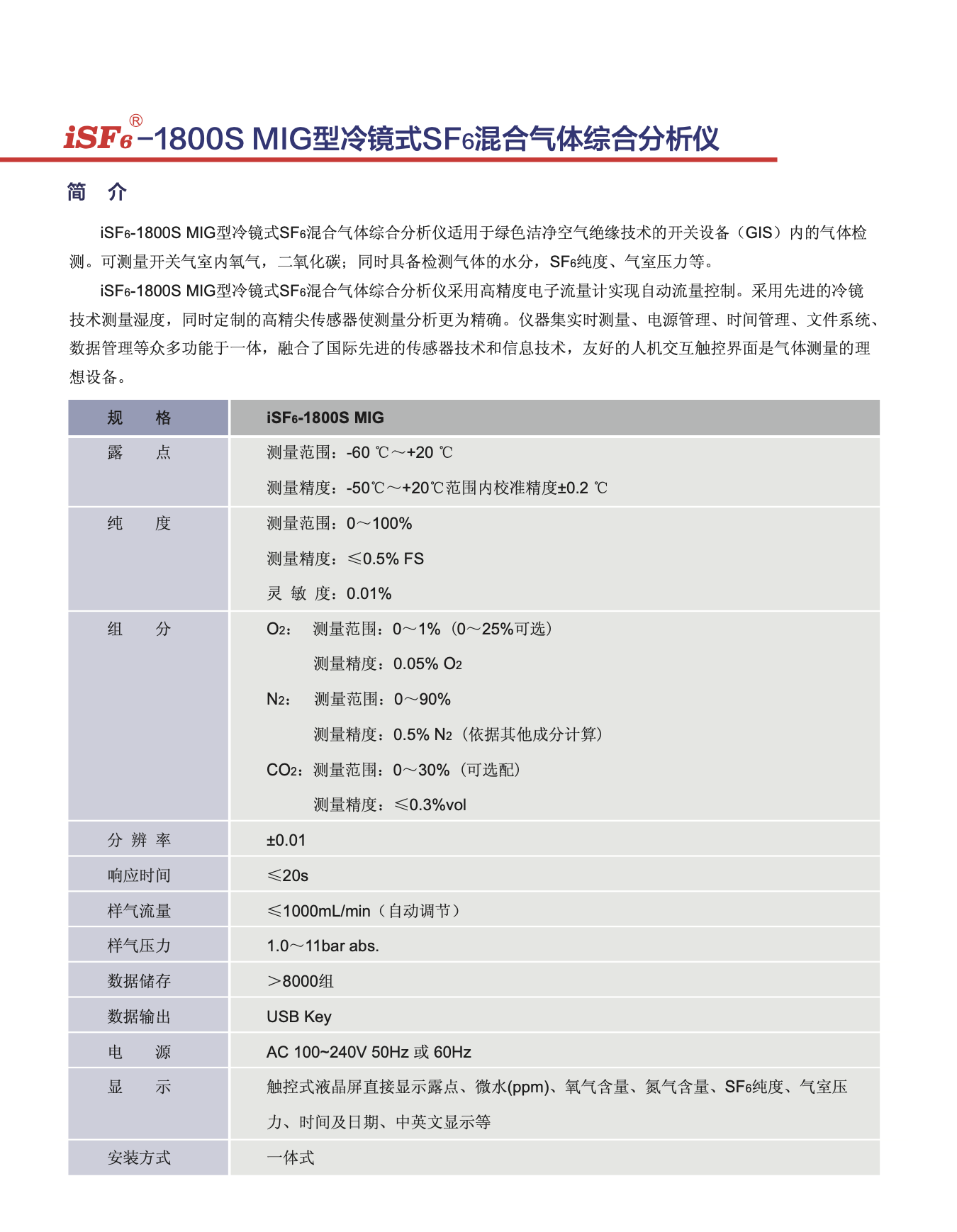 iSF6-1800S MIG型冷鏡式SF6混合氣體綜合分析儀