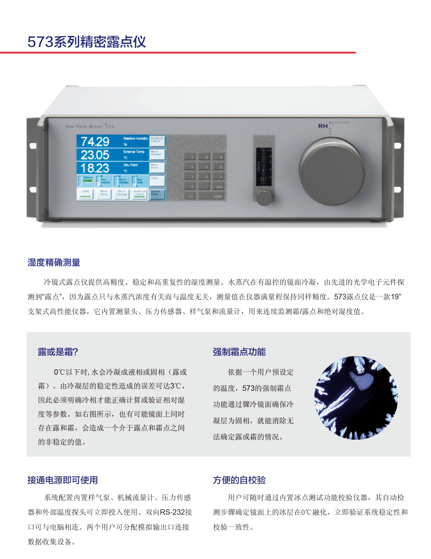 573露點(diǎn)鏡面儀是一種高性能機(jī)架式儀表,尺寸19英寸,非常適合于固定的工業(yè)裝置。573配備了一個(gè)一體化測(cè)量頭、壓力傳感器、采樣泵和流量計(jì),可廣泛應(yīng)用于連續(xù)精確監(jiān)測(cè)霜/露點(diǎn)和絕對(duì)濕度值。573H和573HX的一個(gè)特殊之處在于自動(dòng)疏水閥,用戶可以控制在95度以下露點(diǎn)測(cè)量時(shí)的冷凝物的排放。