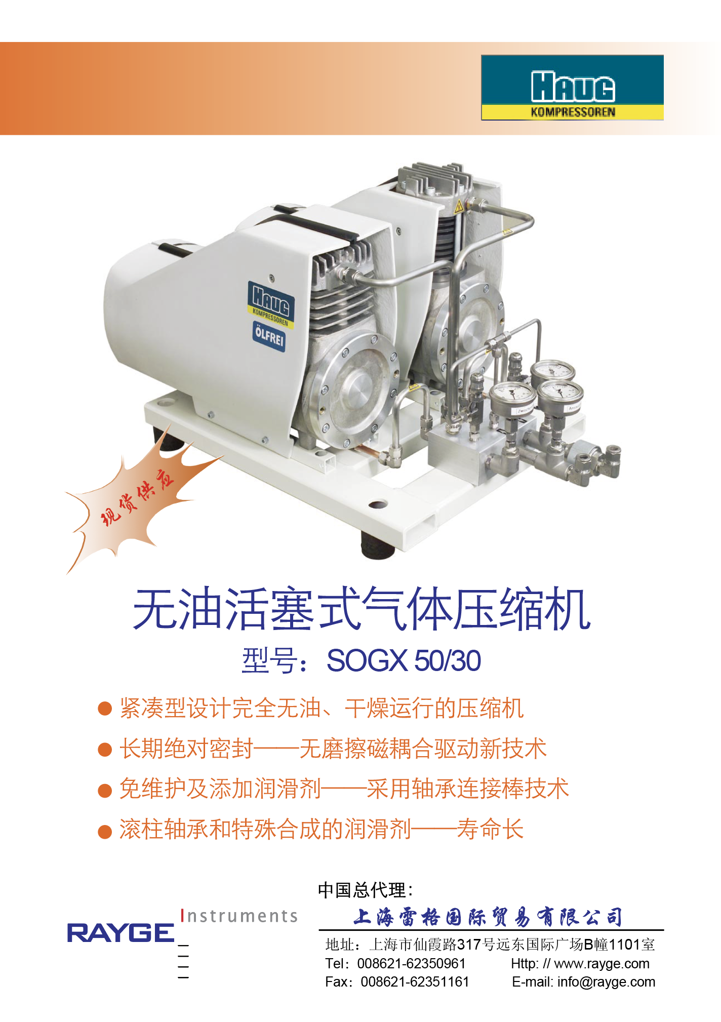 緊湊型設(shè)計(jì)完全無油、干燥運(yùn)行的壓縮機(jī) |